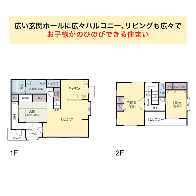 広い玄関ホールに広々バルコニー、リビングも広々でお子様がのびのびできる住まい